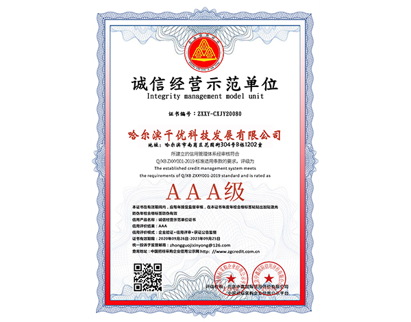 诚信经营示范单位